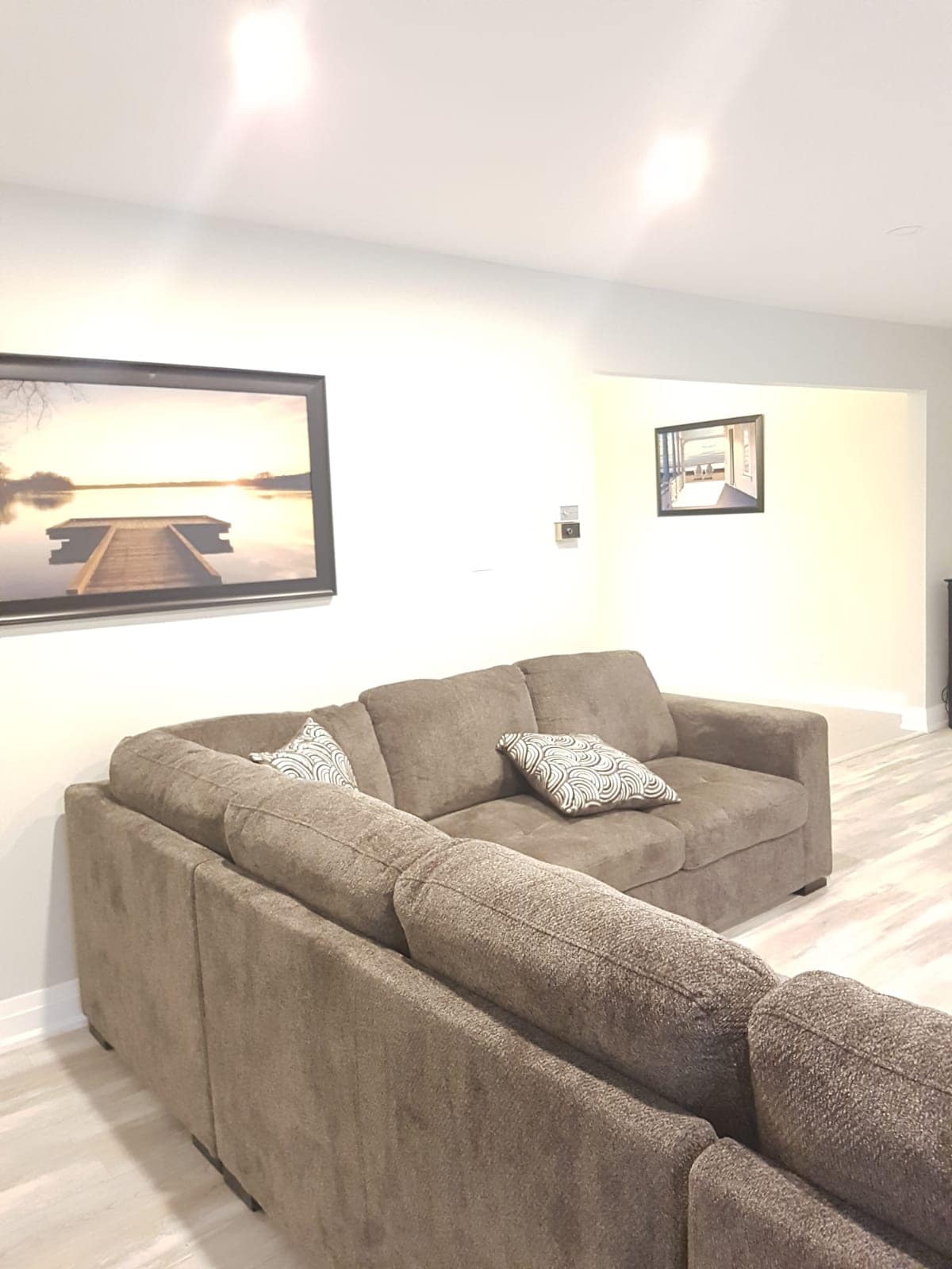Appartement de sous-sol avec 1 chambre à coucher récemment rénové ! ✅ 750 pieds carrés d'espace ouvert avec de grandes fenêtres, ce qui le rend lumineux et aéré Salon confortable avec : ✅ Canapé Lit ✅ de jour qui se transforme en lit king size ✅ Cheminée ✅ Télévision connectée Cuisine moderne équipée de : ✅ Lave vaisselle ✅ Four à Micro Ondes ✅ Lave-linge et sèche-linge ✅ Machine à café ✅ Four, grille-pain, etc. ✅ Espace extérieur avec patio et barbecue ✅ 2 places de stationnement dans l'allée Idéal pour des vacances en famille ou des voyages d'affaires ! 😊
