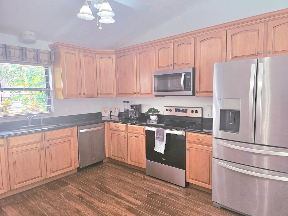 Bienvenue dans votre sanctuaire calme, spacieux et privé. Profitez de tous les nouveaux appareils électroménagers dans la cuisine entièrement équipée, d'une télévision à écran plat de 50 pouces et d'un espace extérieur ombragé entouré de verdure. Il est situé à seulement quelques minutes de l'aéroport international d'Orlando Sanford, des restaurants et boutiques du centre-ville historique de Sanford, du bord de mer pittoresque du lac Monroe, et est situé au centre entre les plages de Floride et les parcs d'attractions. **L'espace est nettoyé avec des nettoyants approuvés par l'EPA, y compris les surfaces fréquemment touchées**