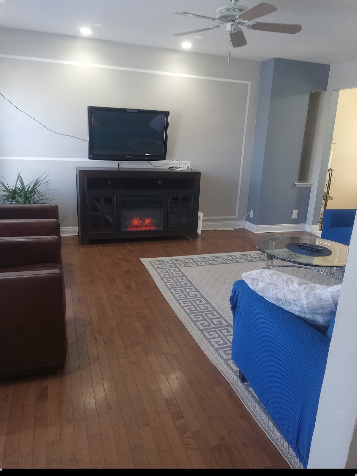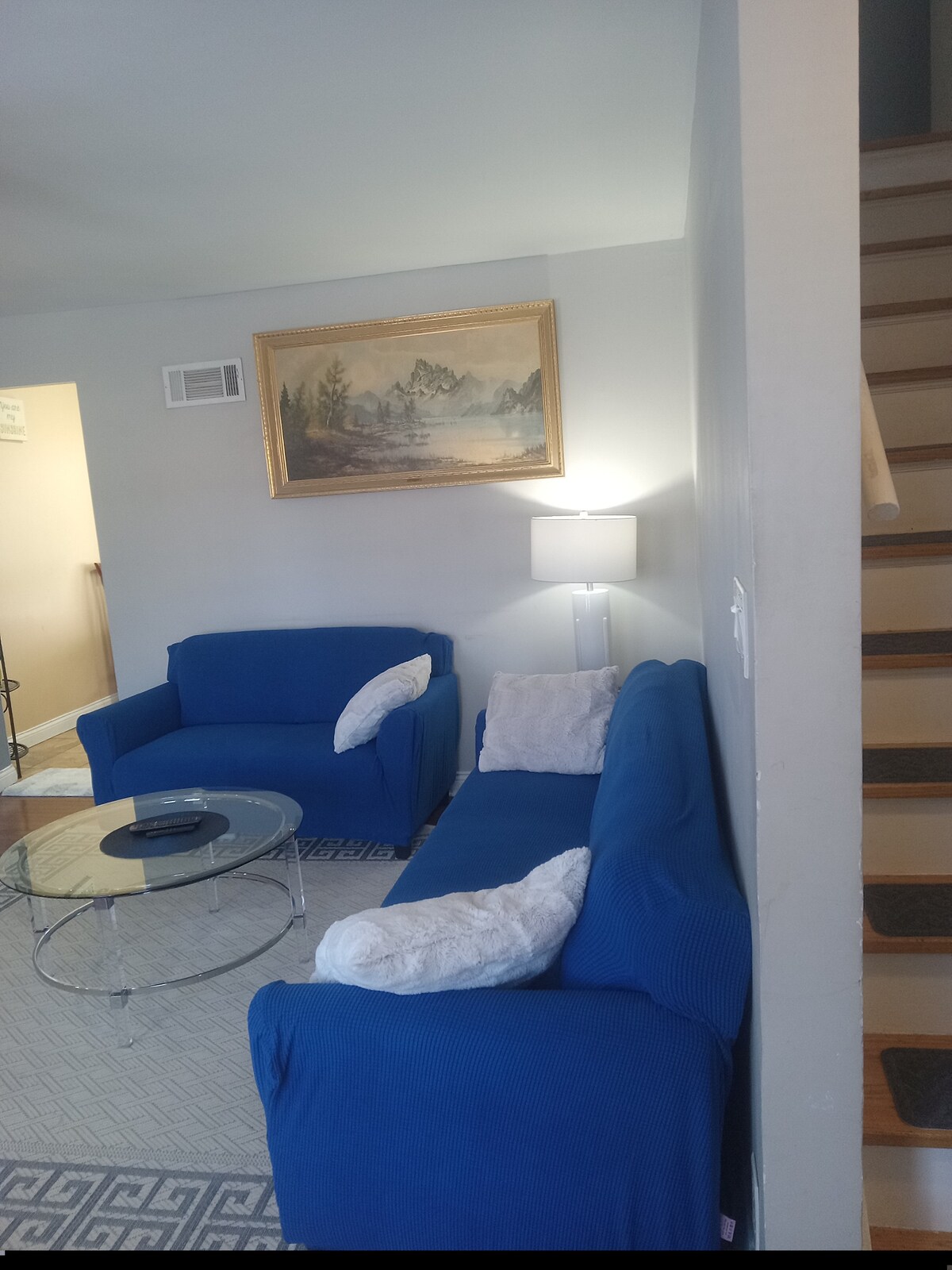 Clean, open and well appointed lower level of home with private in/out access separated from the main level. The suite-style space includes a generous living area with two large couches, 49” smart TV w/ sound system, king bed, full bathroom, kitchenette w/ table, washer/dryer & work desk. Great location 5-10 minutes from O'Hare, Allstate Arena, Rosemont and Rivers Casino with ample transportation options. Property is within short walking distance of grocery stores, gym, parks & more.