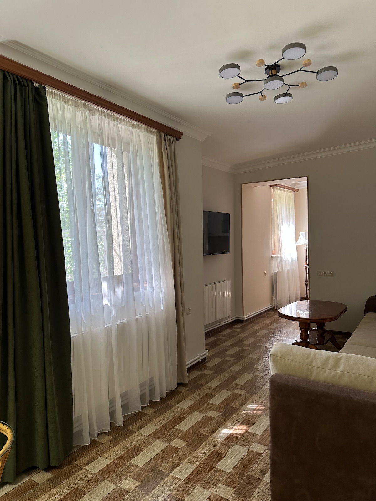 Bienvenue dans notre endroit confortable au cœur de la ville, où vous pourrez profiter de la beauté des bois de Dilijan depuis votre fenêtre. Super proche de toute l'action de la ville, en particulier du restaurant Carahunge (à seulement 3 minutes à pied) et du parc Verev (à 5 minutes à pied). À l'intérieur, nous avons tout pour rendre votre séjour à Dilijan aussi confortable que possible. Un salon décontracté, une cuisine pratique, une chambre confortable et oui, vous l'avez deviné, deux salles de bains. Votre maison loin de chez vous vous attend !
