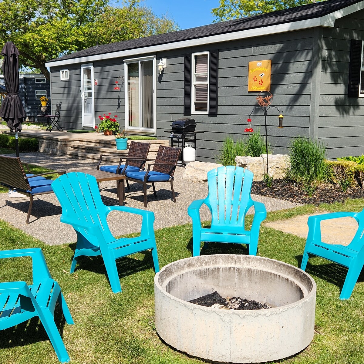 Si vous faites du « glamping » lorsque vous campez, vous apprécierez les équipements plus raffinés de ce chalet de style boutique sur le lac Érié. Sans doute la meilleure vue de cette petite communauté de chalets, The Kiss n Tell se dresse sur une falaise surplombant le lac - une vue imprenable depuis chaque pièce. Réveillez-vous au son des vagues qui déferlent sur le rivage, bronzez dans des chaises longues, dînez pendant que le soleil brille sur l'eau, admirez les étoiles depuis le jacuzzi ou asseyez-vous près d'un feu au bord du lac (bois de chauffage fourni). Des options infinies sans quitter ce bel espace.