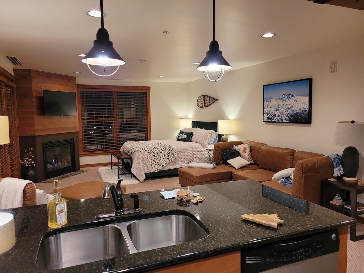 Venez séjourner dans la magnifique Silver Valley. Ce studio est situé à The Ridge, un condo en face de la télécabine. Il est calme et dispose d'une cuisine complète, mais il est proche de toute l'action. Jouez dans la neige, éclaboussez-vous au parc aquatique, profitez d'une descente de la rivière, faites du vélo de montagne ou passez une soirée confortable. Il y a un jacuzzi, un sauna et un hammam sur place. Rangez votre équipement de neige dans la chambre. Wifi et Roku TV. Capacité d'hébergement de 4 personnes. Un lit Queen Size, un grand canapé et un matelas gonflable double.