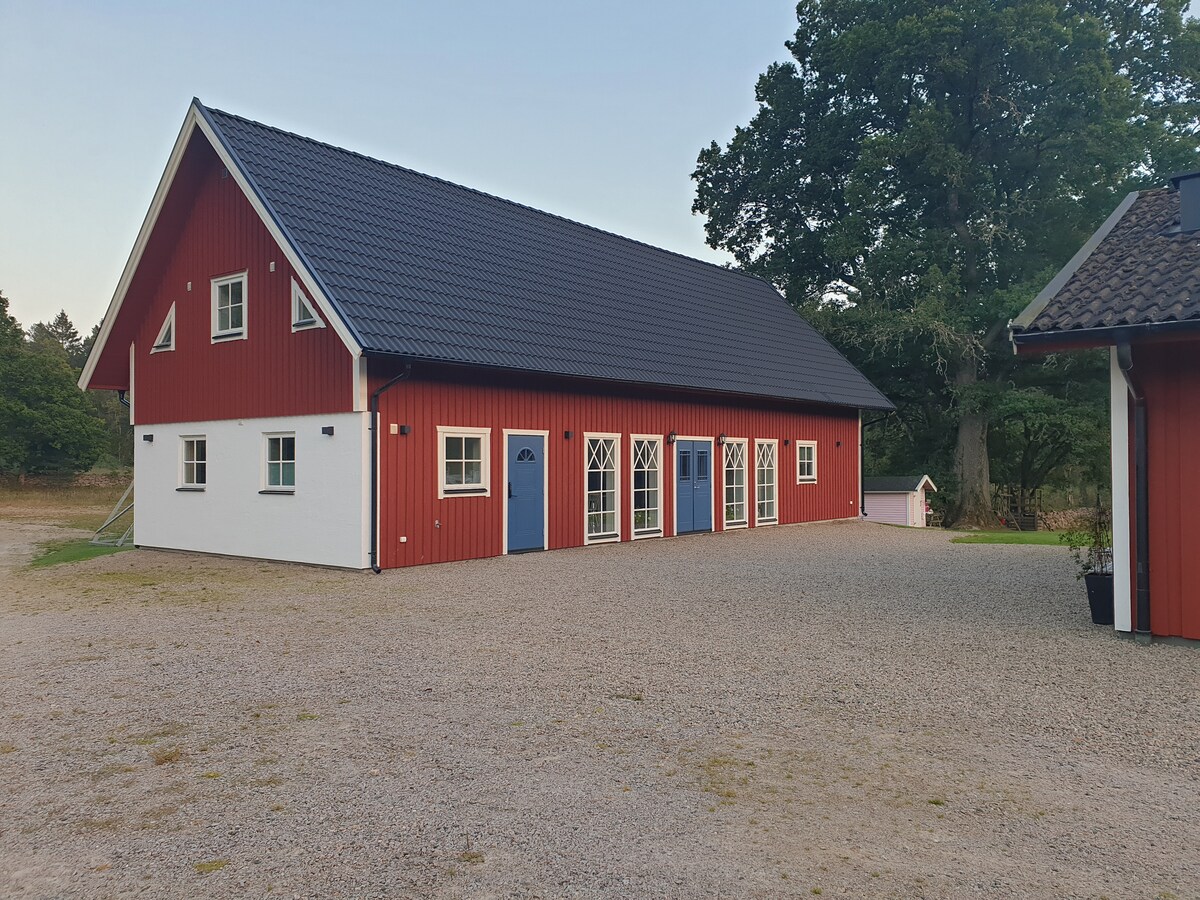Séjournez dans une ferme en 2022. Maison en pierre nouvellement construite dans un cadre magnifique et avec une superbe vue sur le paysage et la mer. Une expérience d'hébergement unique avec des conditions idéales pour la tranquillité, la proximité de la nature et toutes les excursions de la péninsule de Bjäre. En 2025, nous n'avons pas terminé l'environnement le plus proche autour de la maison, mais une terrasse avec mobilier d'extérieur est disponible. Nous fournissons le linge de lit et les serviettes. Si vous souhaitez que nous nous occupions du nettoyage final, cela coûte 600 SEK. Pendant la saison hivernale 1/11-1/3, nous sommes fermés aux réservations.