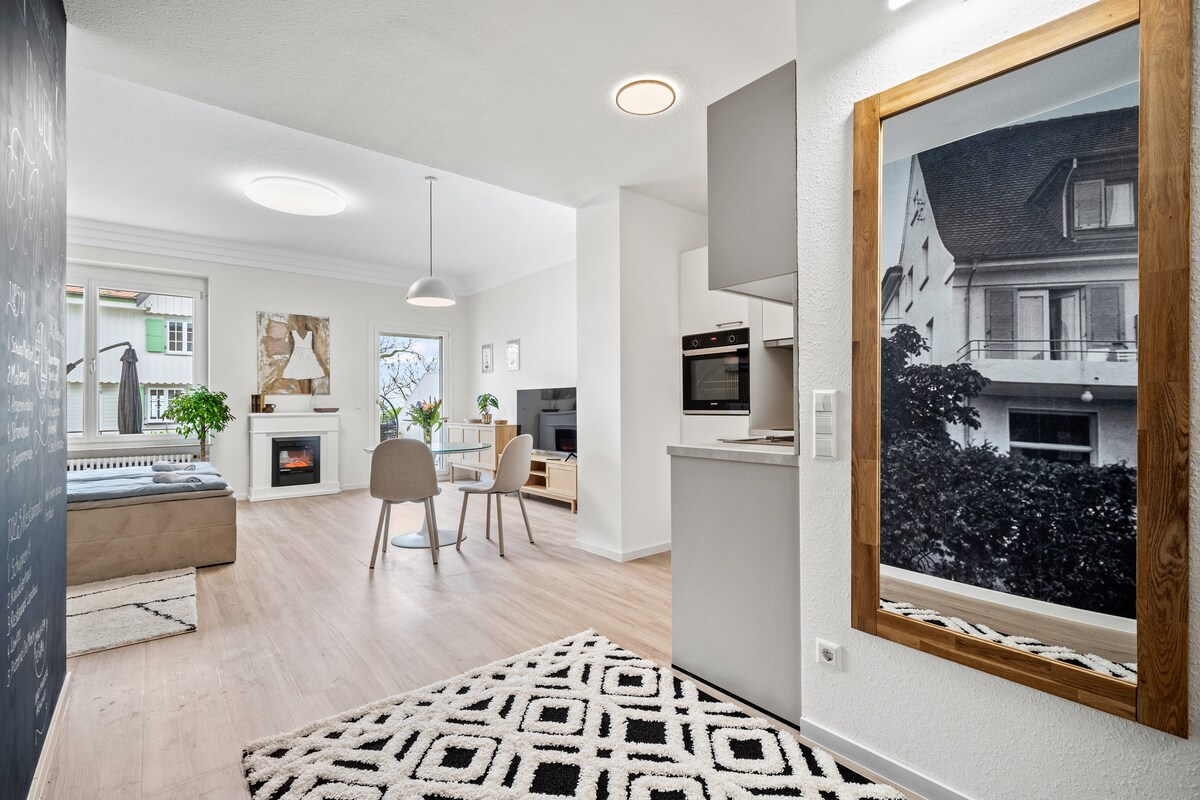 Appartement moderne, lumineux, élégamment meublé, 1 chambre avec salle de bains et balcon orienté au sud, se trouve au 1er étage de notre maison. Il se trouve à environ 1 km du lac de Constance. Promenade au bord du lac, commerces, cafés et restaurants à proximité. Dans le village, tout est accessible à pied ou à vélo. A pied : Gare 8 min. Boulangerie pour le petit déjeuner 10 min. Norma 5 min. Plage naturelle qui invite à la baignade 15 min. Visite de la foire en voiture 10 min. Location de vélos possible sur place