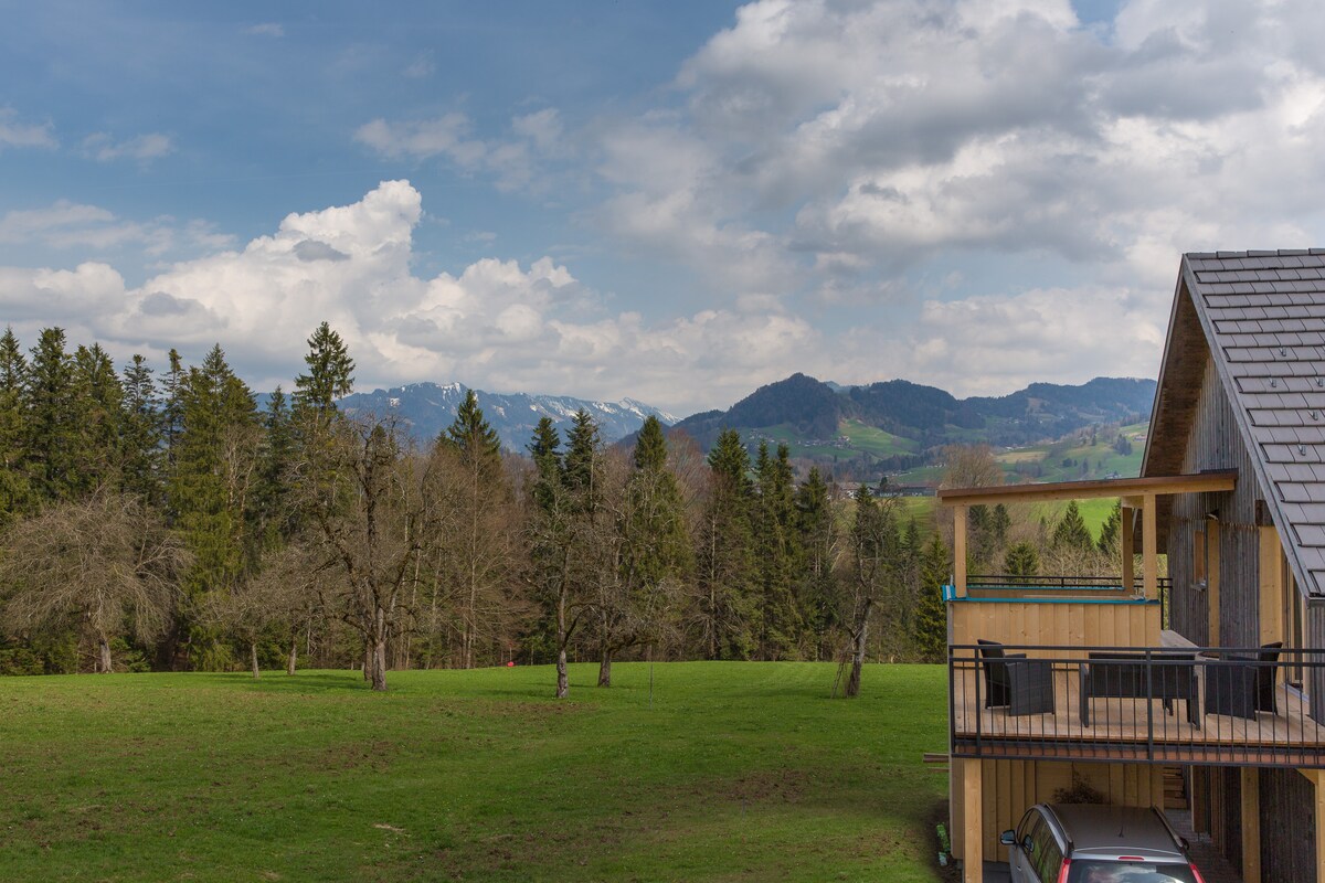 Chalet en bois moderne avec vue fantastique sur toute la vallée et dans les superbes Alpes autrichiennes. 3 étages au charme super confortable, situé au-dessus de Schwarzenberg et à 5 minutes en voiture de la station de ski de Bödele. La maison est située à environ 15/20 minutes en voiture de certaines des meilleures stations de ski de la région comme Mellau/Damüls, à environ 35/40 minutes de la meilleure et plus grande destination de ski d'Autriche, l'Arlberg, qui est reliée via Schröcken/Warth par une liaison directe en téléphérique.