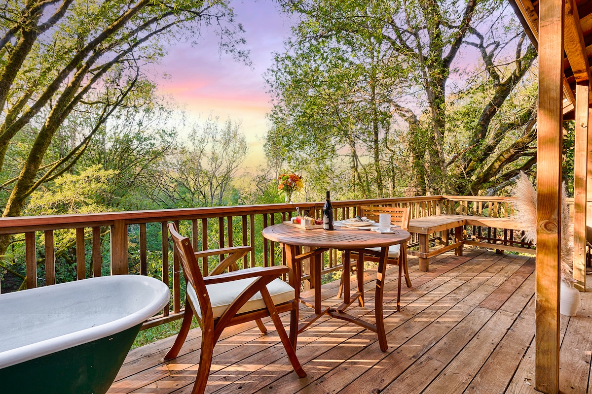 Le Sonoma Spyglass est une magnifique retraite de 600 pieds carrés, conçue et construite par Artistree Homes, alliant harmonieusement durabilité et lien profond avec la nature. Niché au cœur de la région viticole de Sonoma, ce joyau unique offre un accès aux promenades à proximité et aux vignobles locaux, ce qui le rend parfait pour les couples ou les voyageurs en solo. Plongez dans la baignoire avec une vue incroyable ou profitez du sauna en tonneau détaché pour un séjour parfaitement relaxant.