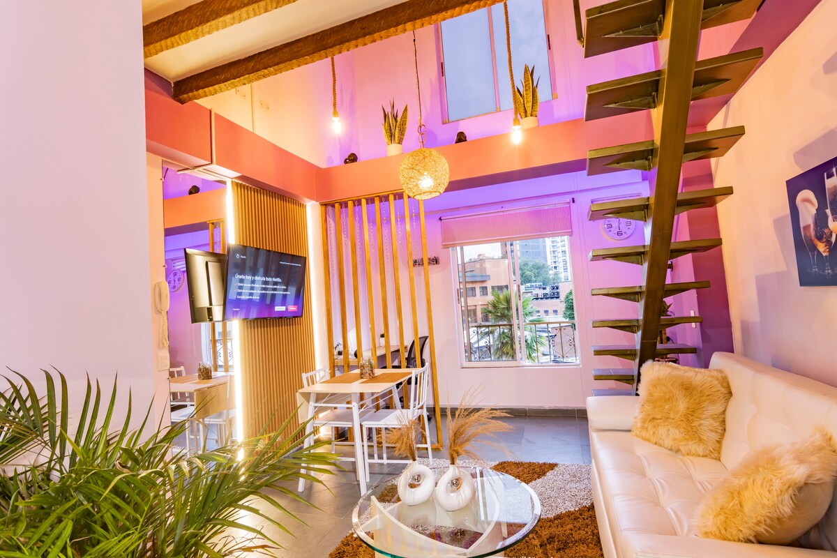 • Emplacement incroyable au cœur de Poblado : « Oasis au cœur de la meilleure partie de la ville, à distance de marche de tout. » • Loft moderne entièrement meublé. • Canapé-lit. • WiFi haut débit 100 Mb. • Beaucoup de nature autour. • Personnel sur place pour vous aider à répondre à vos besoins 24h/24 et 7j/7. • Climatisation • Jacuzzi privé ; • Piscine dans les espaces communs. • Balcon avec vue imprenable. • À 5 minutes à pied des meilleurs restaurants, cafés, centres commerciaux. À 15 minutes à pied de Poblado et du parc Lleras. • Cuisine entièrement approvisionnée. • Télévision connectée 43 pouces avec applications. • Prix transparents.