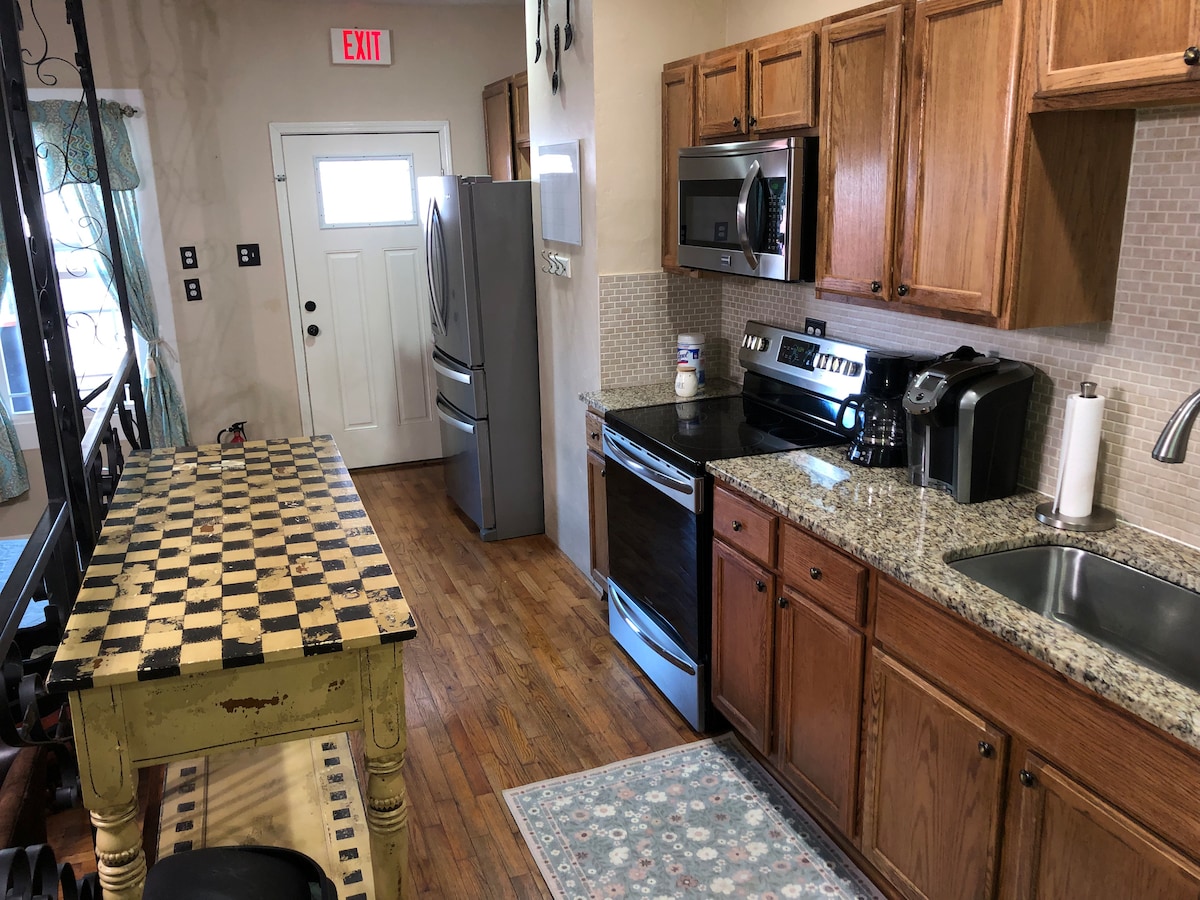 Portes extérieures avec entrée télécommandée pour plus d'intimité, 2 lits simples dans le séjour, canapé-lit (complet), réfrigérateur avec machine à glaçons, micro-ondes, cafetière, plats, four NINJA FOODI, grille-pain, mijoteuse, bouilloire, Wi-Fi, table, accès à la piscine, table de billard, etc. TV (Fire Stick). Nous avons des animaux de compagnie, mais dans une partie séparée de la maison/cour. À quelques minutes de la ville et du Presbyterian College. Parfait pour les visites, les sports. L'appartement était auparavant utilisé pour la famille. Pittoresque/rustique, parfait pour les séjours privés.