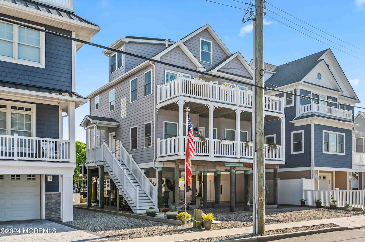 TERRASSE PRIVÉE SUR LE TOIT ! ! ! ! 1,5 pâtés de maisons de la promenade/plage ! Situé dans l'extrémité sud souhaitable de Seaside Heights - à moins de 2 pâtés de maisons du début de Seaside Park ! Tout le groupe bénéficiera d'un accès facile à tout depuis cet endroit central. Pub irlandais très populaire en face. À distance de marche de tout ce dont vous pourriez avoir besoin : restaurants, cafés, magasins, arcades, manèges, etc. Le logement lui-même est situé dans une rue calme à sens unique. Le meilleur des deux mondes Il y a tellement d'espace pour s'étaler !
