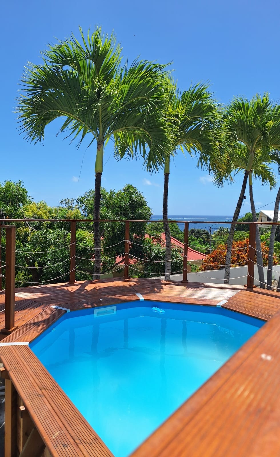 Ce logement affiche un style résolument unique. Appartement de haut standing, avec vue imprenable sur la mer et petite piscine vitrée privative (prof 1,30 m, largeur 2,50x2,50) 2 chambres climatisées, cuisine entièrement équipée et fauteuil massant ! Venez vous ressourcer dans un écrin de beauté et de confort. Arrivée autonome. Fumeur autorisé en extérieur. Distance aéroport: 25 mn Commerce le plus proche: 15 mn Plage de pêcheur à 5 mn à pied (sable noir) Activités nautiques à 5 mn à pied