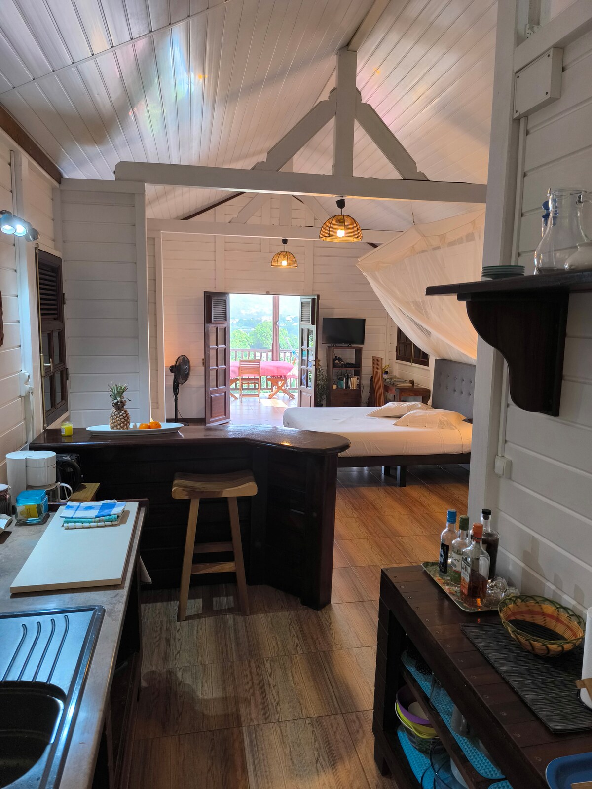 pour amateurs de mer et de nature, loue petite maison de charme entourée d'un jardin tropical s'ouvrant sur le large. Située dans le parc naturel régional de pointe savane ( randonnées en forêt vers les plages sauvages) dominant la baie de cayol et les îlets du robert.