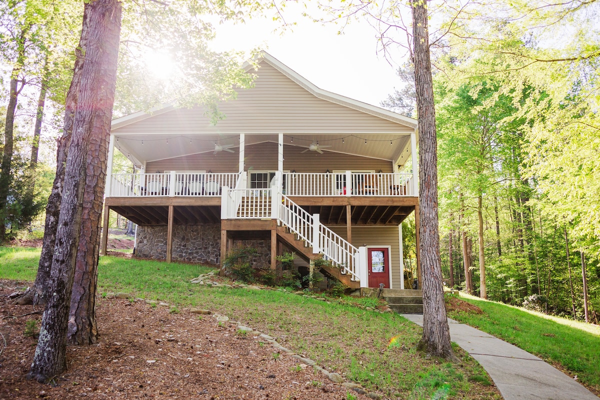 Nous fournissons du bois de chauffage en hiver ! Profitez d'une maison récemment rénovée située dans un virage extrêmement calme et privé du magnifique lac Hyco. Détendez-vous avec une vue imprenable sur l'eau et tout ce dont vous avez besoin pour un week-end romantique ou une réunion de famille. N'hésitez pas à utiliser tous les jouets aquatiques et le matériel de pêche fournis pour rendre votre séjour au lac vraiment mémorable. À proximité du NOUVEAU casino Caesars Virginia à Danville, VIR, avec une route et une allée pavées ainsi qu'un garage pour deux voitures avec une table de ping-pong !