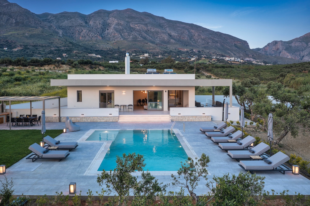 Epsilon Villa présente un havre de luxe contemporain, au design moderne et à une piscine privée chauffée située dans de vastes terrains. Avec quatre chambres méticuleusement aménagées pouvant accueillir jusqu'à 8 personnes, une vue panoramique sur la mer et la montagne et des équipements complets, elle offre une retraite inégalée en Crète. Idéal pour les voyageurs exigeants à la recherche de raffinement et de sophistication, il promet un séjour inoubliable et magique près de la plage. Le chauffage de la piscine est payant.