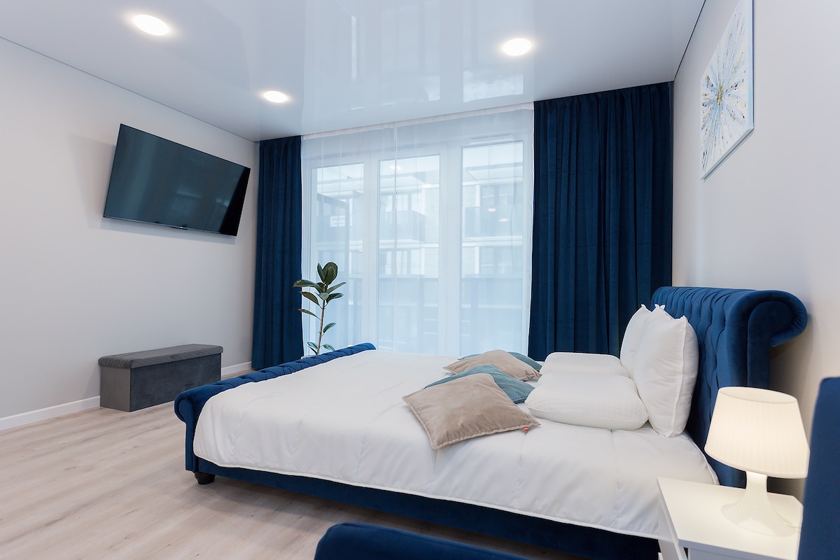 Détendez-vous avec une vue panoramique sur la verdure et la mer. Proche de la plage (900 m) et du centre de Gdansk et Sopot (15 minutes). ✔ Vue unique ✔ Excellent emplacement ✔ Deux chambres doubles et un canapé-lit ✔ Cuisine entièrement équipée pour 6 personnes : poêles, casseroles, couverts, grille-pain, lave-vaisselle, lave-linge, etc. ✔ Salon climatisé ✔ WiFi, Netflix, télévision 4K ✔ Place de parking dans le garage surveillé ✔ Salle de sport, sauna sec et vapeur, salle de club avec billard, bar, télévision