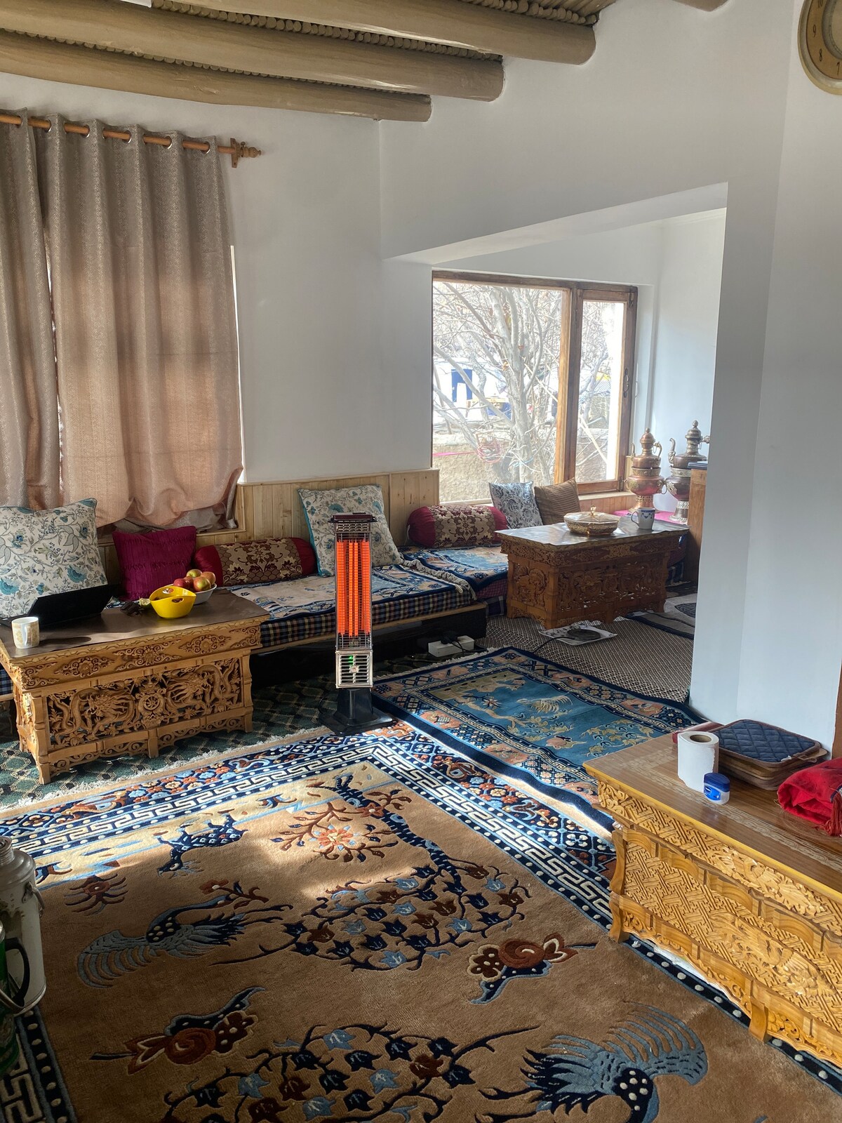 Experience a warm homestay in Leh, perfect for families & those seeking quiet comfort. Guests praise the host's exceptional hospitality, treating everyone like family,offering local insights, and going above & beyond. Enjoy spacious rooms with views of the Himalayas&Shanti Stupa.Relax in the peaceful garden, surrounded by apple trees.Located a short walk from the market,it offers quiet nights away from traffic.Relish the cleanest stay with reliable hot water,making it a true home away from home.