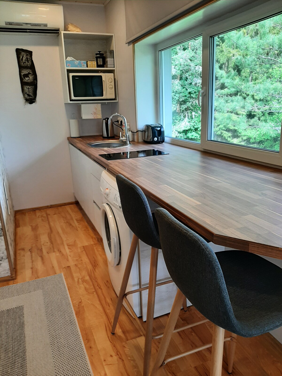 Nous louons la maison que mon grand-père a construite. J'y ai vécu pendant de nombreuses années avec ma famille, mais la vie s'est avérée comme il y a sept ans, nous avons dû déménager en Finlande. Depuis, la maison était toujours vide pendant 10 mois en un an, nous avons donc décidé de la rénover et avons commencé en tant qu'hôte Airbnb. Les intérieurs des chambres sont très confortables et accueillants mais en même temps modernes.