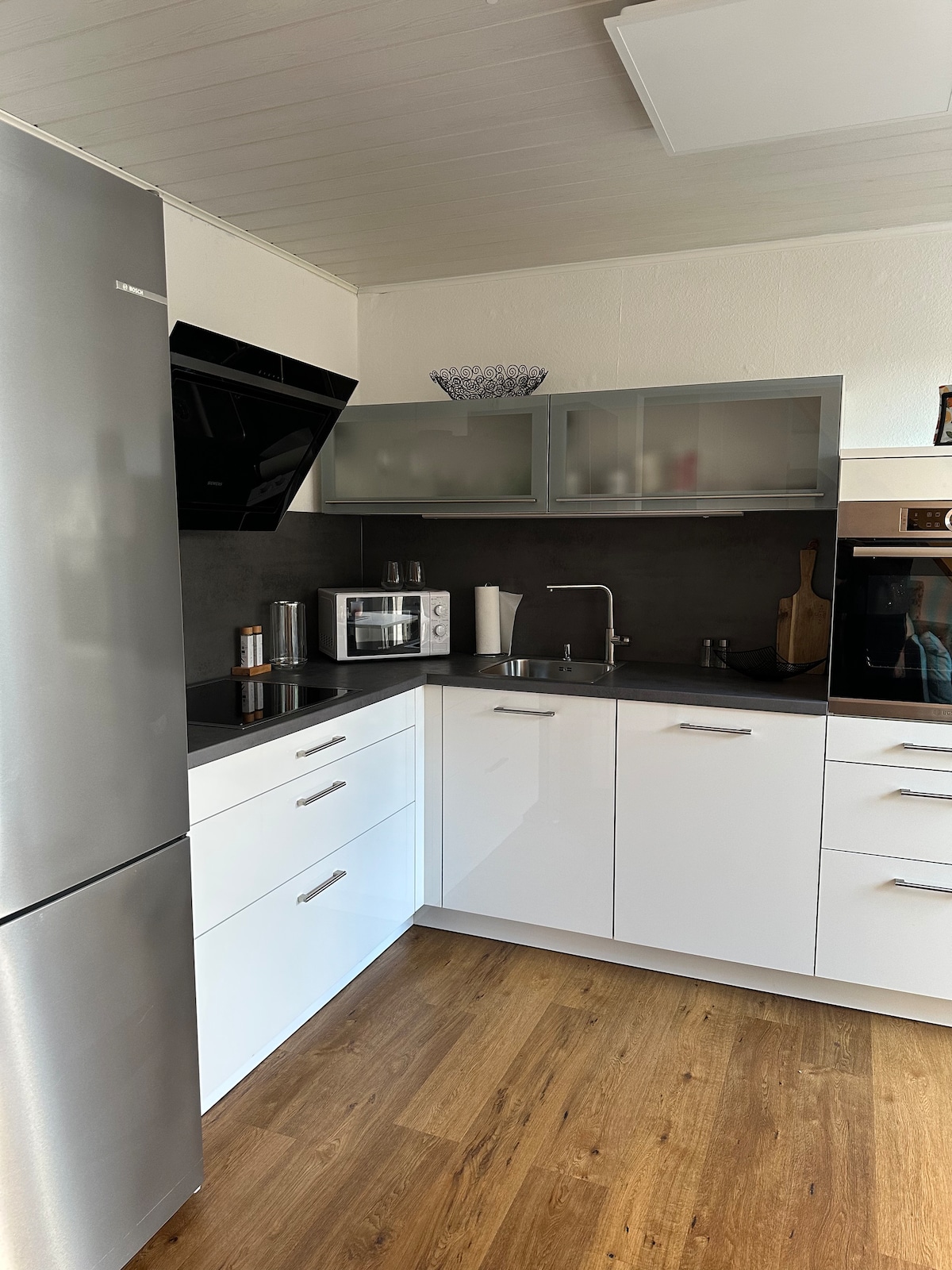 L'EyerHof - propriété de la famille Eyer depuis trois générations - une ferme de plus de 120 ans qui a été rénovée de 2019 à 2022 et combine maintenant le charme particulier d'une ferme avec un style industriel moderne. En plus de la terrasse, de la cour et du jardin, il y a une station de barbecue avec un grand nouveau barbecue à gaz Rösle et la grange qui peut être utilisée comme salon confortable. L'intérieur de la maison combine colombages avec le fer moderne, le bois, le grès , les murs en argile et l'ancien avec le nouveau 🖤