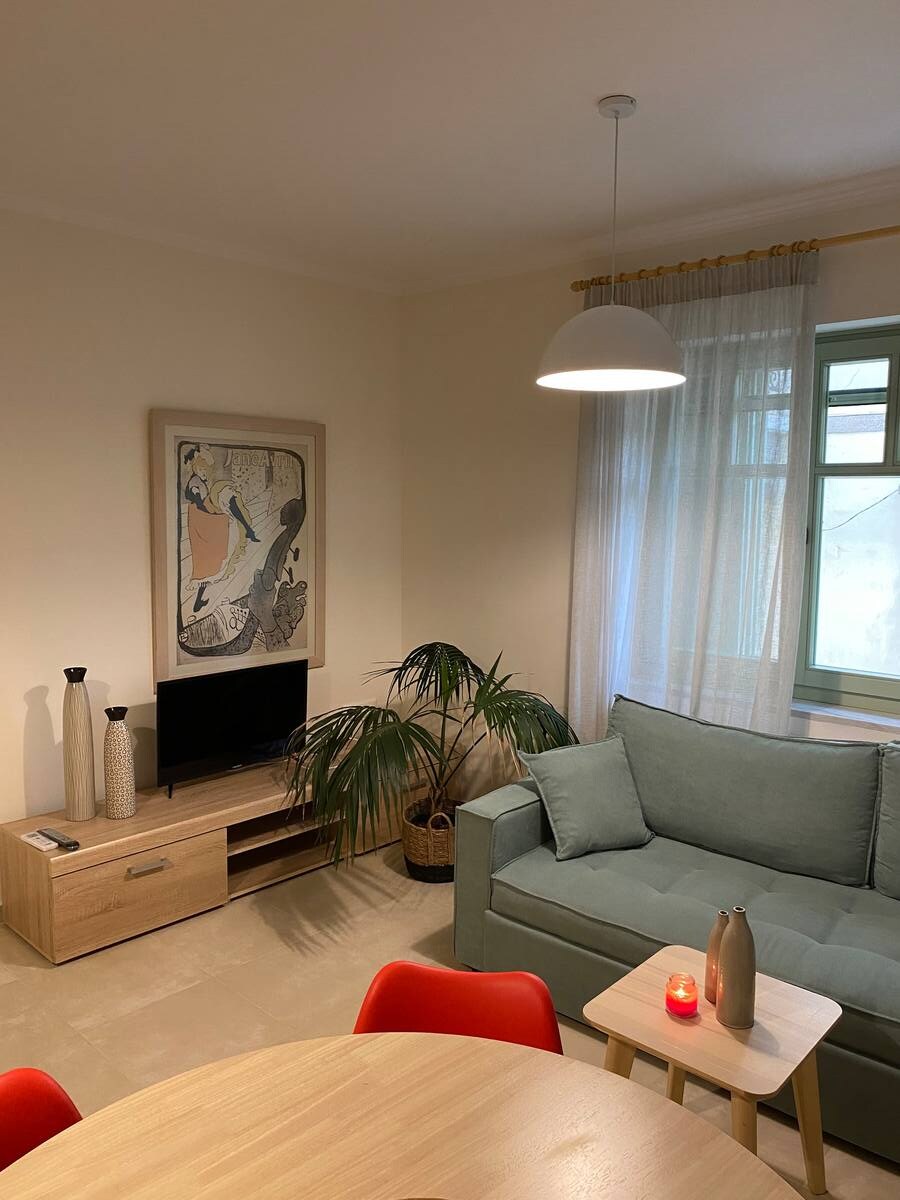 L'appartement est composé de deux pièces, avec de l'aluminium, des écrans, 2 climatiseurs, un chauffage autonome, un parking. Il peut confortablement accueillir une famille de quatre personnes. Il est équipé de tous les appareils nécessaires dont vous aurez besoin (cuisine, réfrigérateur, machine à laver, cafetière, grille-pain, bouilloire, télévision, wifi, sèche-cheveux). Il est situé dans le centre de Myrina, dans un quartier calme et à 2 minutes à pied du marché central, des cafés et des bars.