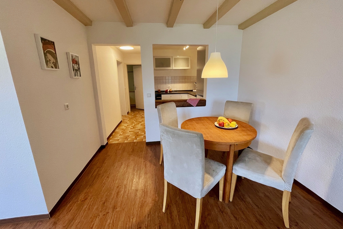 Dans notre appartement lumineux et spacieux, les familles, les couples et les petits groupes peuvent profiter d'une vue panoramique fascinante sur le Feldberg. Ici, vous échappez au stress quotidien et plongez dans l'atmosphère apaisante de la Forêt-Noire. Nos points forts : ✔️ Piscine ✔️ Sauna ✔️ Grand balcon avec mobilier de salon ✔️ Salle de fitness ✔️ Table de ping-pong ✔️ TV et streaming Parking ✔️ gratuit Cuisine ✔️ entièrement équipée Nous sommes impatients de vous accueillir !