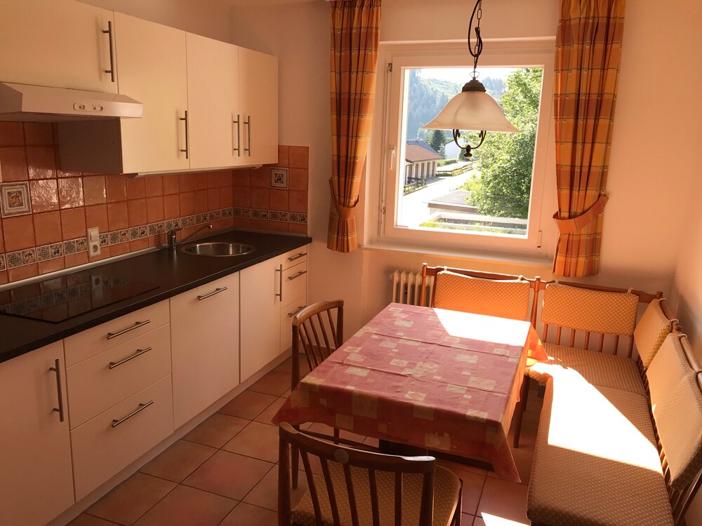 Tu habites (60 m²) dans une ancienne ferme, au bout d'une impasse, dans un endroit calme juste à côté de la réserve naturelle dans la station thermale au climat sain. Calme et nature à l'état pur. Très proche du lac Schluchsee, du lac Titisee et de la région de Feldberg. La Forêt-Noire est idéale pour la randonnée, le vélo, le ski, la baignade dans le lac, etc. NOTE : LA TAXE DE SÉJOUR EST INCLUSE 5,90 € /JOUR/ 2. PERSONNES. CARTE KONUS INCLUSE. 2 personnes peuvent utiliser gratuitement les transports en commun dans le Bade-Wurtemberg