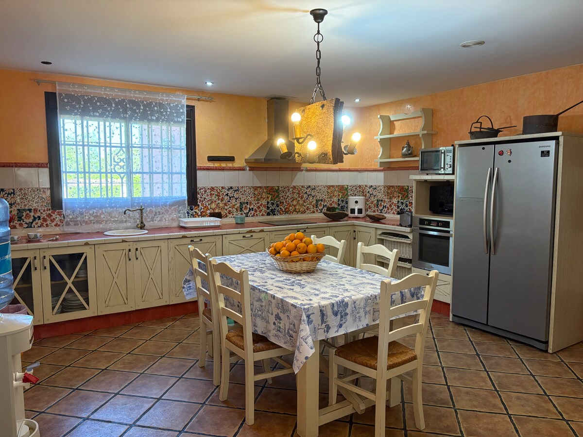 Belle maison de style andalou dans un endroit calme qui transmet la sérénité. Vue panoramique sur la campagne et la mer en arrière-plan, les jours clairs, vous pouvez même voir la côte du Maroc. Meublée très fonctionnelle avec élégance et simplicité. Le rez-de-chaussée se compose de toilettes, d'un salon et d'une cuisine ouverte avec accès au porche et au jardin avec piscine privée. 1er étage : 1 chambre en suite, 1 chambre double et 1 chambre simple qui partagent 2 salles de bains complètes. 2e étage : mansarde avec canapé-lit et toit-terrasse avec vue.