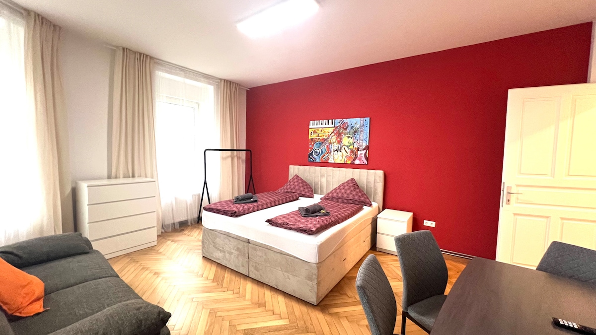 Profitez d'une expérience élégante dans cet hébergement central où rien ne manque. Conçu avec charme, cet appartement maisonnette est le pied à terre parfait pour explorer et profiter de Graz. Actuellement, des peintures de l'artiste de Graz Susanne Katter sont exposées dans l'appartement.