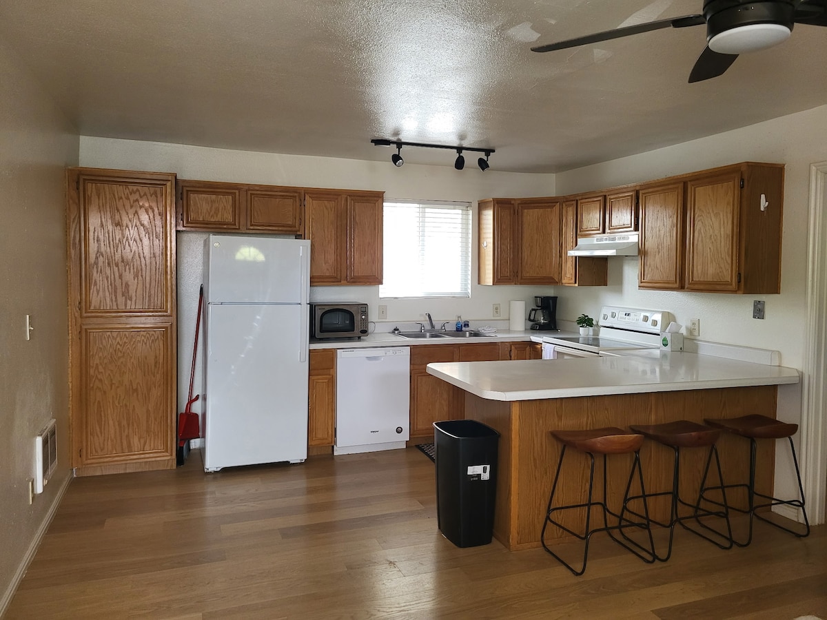 Appartement d'une chambre situé en plein centre de Panaca. À distance de marche de l'école, de l'épicerie et du célèbre camion à tacos. Fabuleuse boutique de soda mixte à une courte distance. Parfait pour combler le fossé entre Zions, la Vallée de la Mort, les parcs nationaux de Great Basin. 6 parcs d'État fantastiques à moins de 30 miles. Recharge pour véhicule électrique à seulement 800 mètres. Ne manquez pas le printemps de Panaca. Il y a un lit queen size et un lit jumeau.
