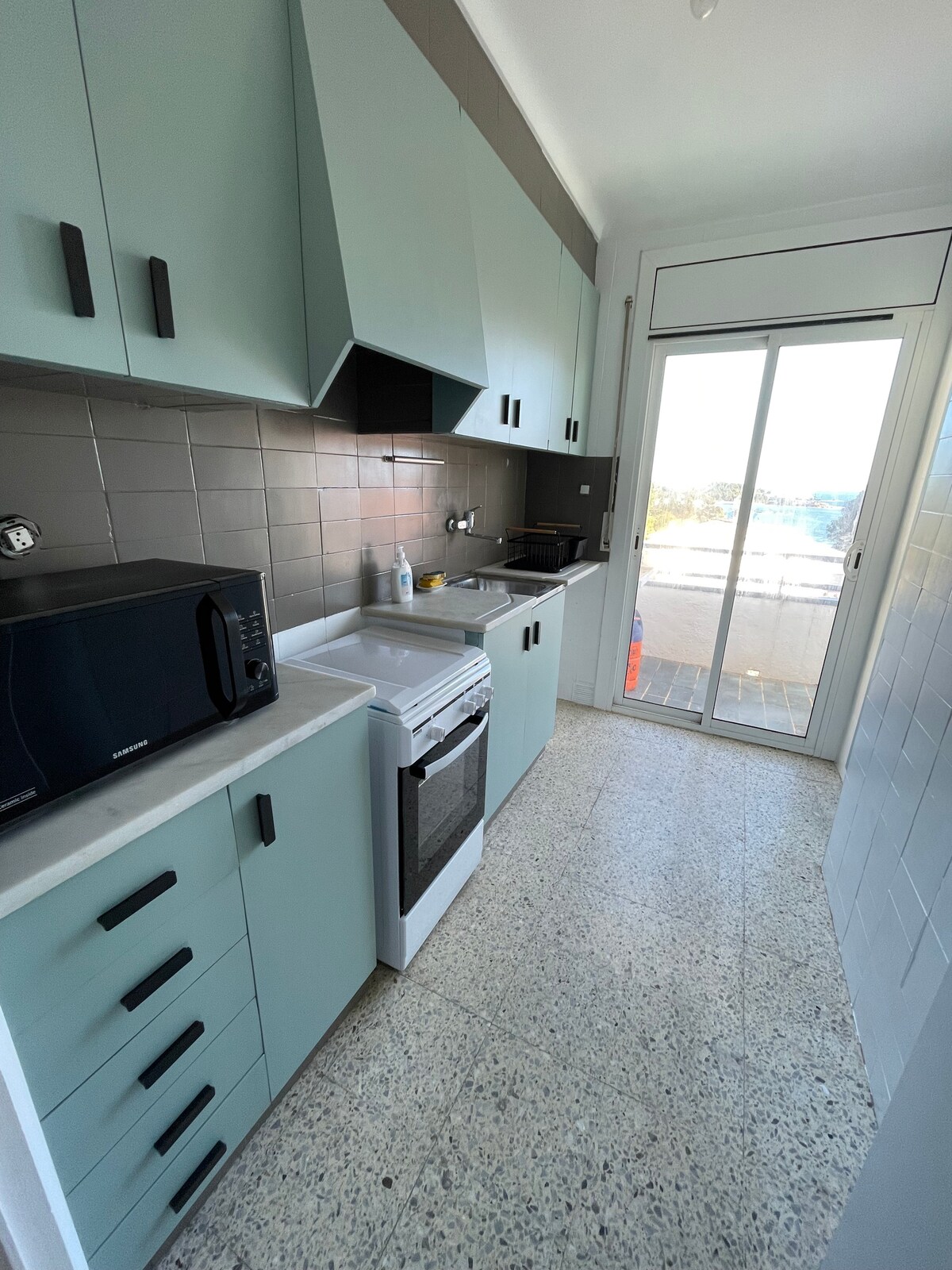 Un ample appartement avec une grande terrasse et une vue à la mer 5 minutes avant de la plage en marchant. Une destination idéale, très tranquille et relâchante, pour être une zone qui se trouve tout près de la mer. Un logement parfait pour quelques vacances familiales ou une escapade le week-end. Profiter de la terrasse en mangeant, en lisant, en prenant le soleil et si tu veux une douche. Dans les mois qui ne sont pas haute saison il est excellent par la grande tranquillité de toute la zone.