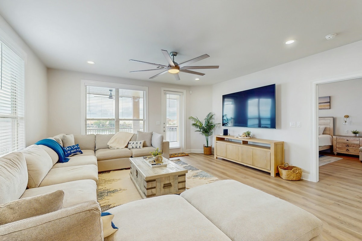 Amusez-vous en famille dans cet élégant condo de 3-2 face à East Horseshoe Bay et au phare. Les enfants jouent dans la belle nouvelle piscine et le jacuzzi situés dans la cour des Waters Condos ou louez un bateau et visitez la baie pendant des heures. Dégustez un repas gastronomique dans les restaurants gastronomiques ou des sandwichs dans un café décontracté avec vue sur l'eau. Reposez-vous dans notre magnifique appartement entièrement équipé et profitez de jeux en famille le soir.