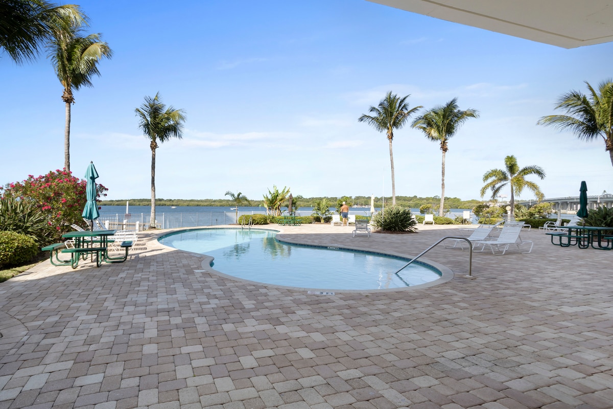 Évadez-vous dans ce magnifique condo de luxe au bord de l'eau, parfaitement situé à quelques minutes des plages, des magasins et des restaurants. Profitez d'une vue spectaculaire sur la baie depuis votre grand balcon privé, ou détendez-vous au bord de la piscine chauffée et du spa avec vue sur l'eau. ✨ Équipements de style complexe hôtelier : piscine chauffée, spa, centre de remise en forme et espace repas extérieur avec BBQ ✨ Confort – lit plate-forme queen size et matelas ferme, baignoire/douche, cuisine entièrement équipée, nouveau lave-linge/sèche-linge combiné dans l'unité ✨ Dîner – Doc Ford 's Rum Bar & Grill à côté.