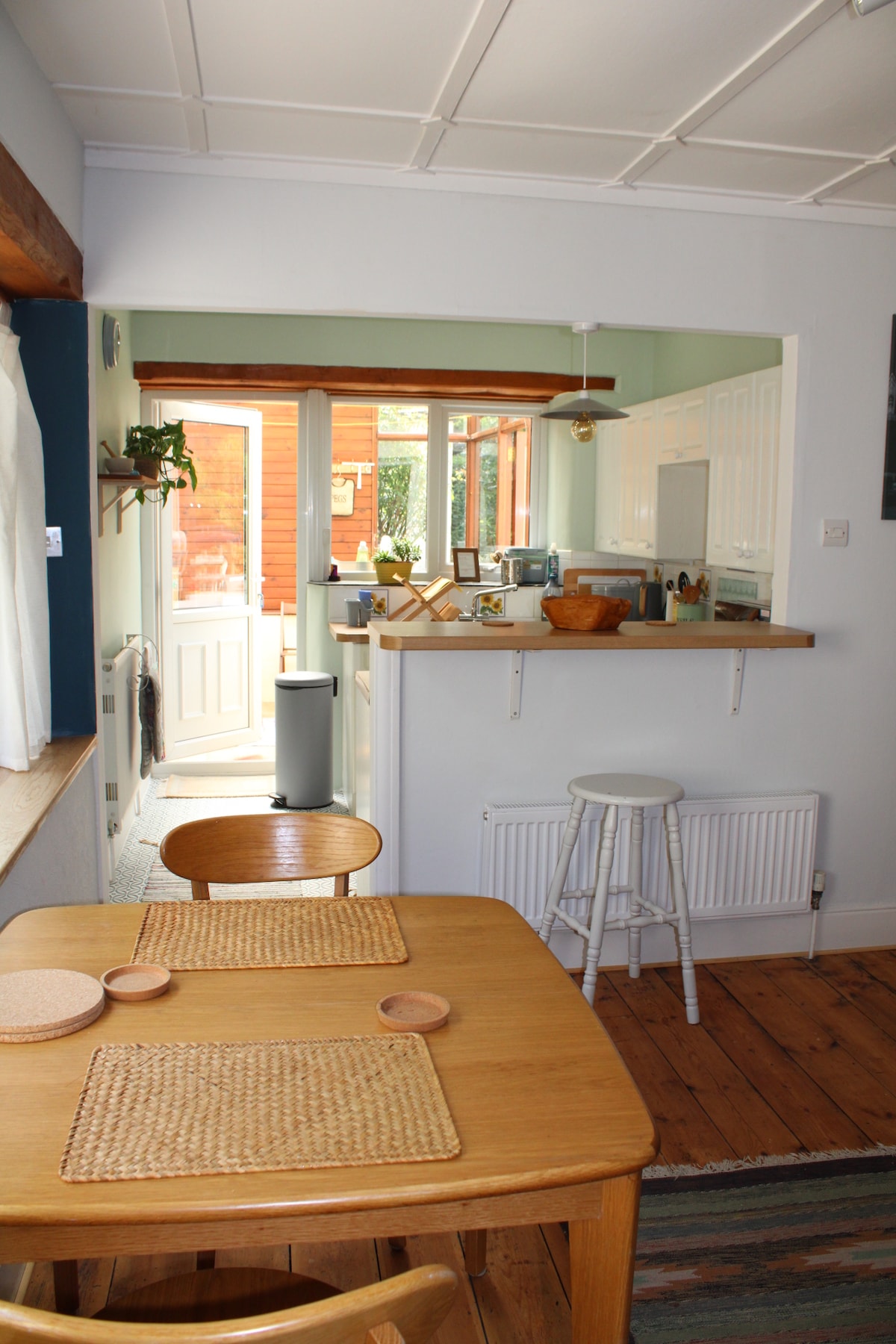 Un espace paisible et privé dans une maison familiale avec vue sur le jardin et entrée séparée pour que vous puissiez aller et venir comme vous le souhaitez. Nous vivons dans un quartier calme avec une place pour garer votre voiture. Tous les draps et serviettes sont en coton de bonne qualité. Le lit est un canapé convertible rendu très confortable avec un surmatelas moelleux et du linge de lit en coton frais. Petite cuisine et équipements disponibles. L'espace est destiné aux voyageurs en solo ou aux couples, mais sachez que l'accès au lit se fait d'un seul côté.