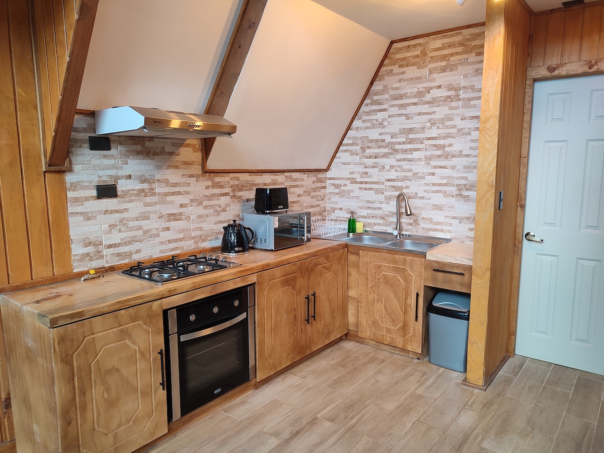 Cabaña para 2 personas, Incluye bicicletas MTB de paseo y opción a tinaja caliente privada ($40.000 adicional). Tiene una espectacular vista al Volcán Llaima y el lugar está rodeado por un bosque precordillerano. El Parque Nacional Conguillio se encuentra a 8 km. Por el lugar pasa el río Captren y se encuentran Los senderos de la Laguna Negra, geositios que forman parte del geoparque KutralKura. También cerca está el centro de esquí, reservas naturales, ciclovías, termas y saltos de agua.