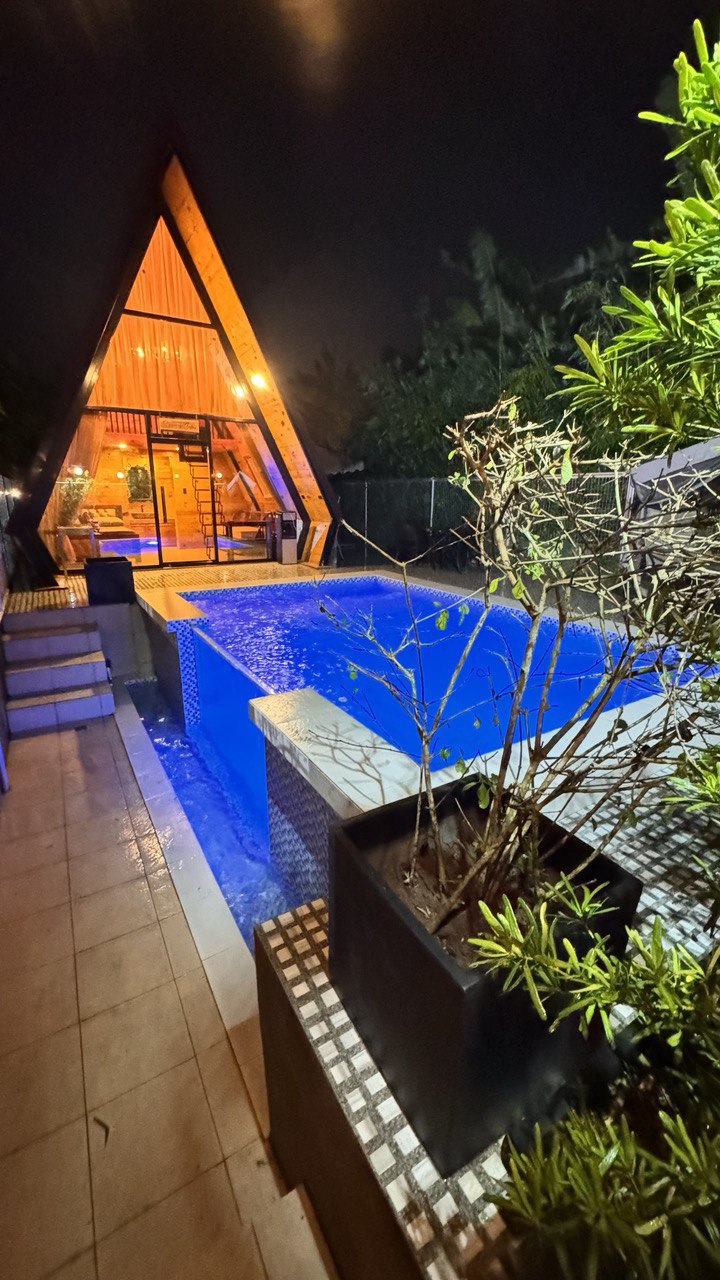 Nichée au cœur de Tagaytay, notre confortable cabane en A moderne vous offre le mélange parfait de chaleur réconfortante et de design sophistiqué. (À seulement 3 minutes de Tagaytay Picnic Grove) Cette cabane est entièrement équipée avec tout le confort d'une maison, y compris une cuisine intérieure et extérieure, un coin repas 6 places, un canapé confortable et un coin lecture, une chambre principale et une chambre loft. Une piscine exclusive, un coin salon confortable avec feu de camp et une terrasse d'observation extérieure vous attendent également dans notre cabane.