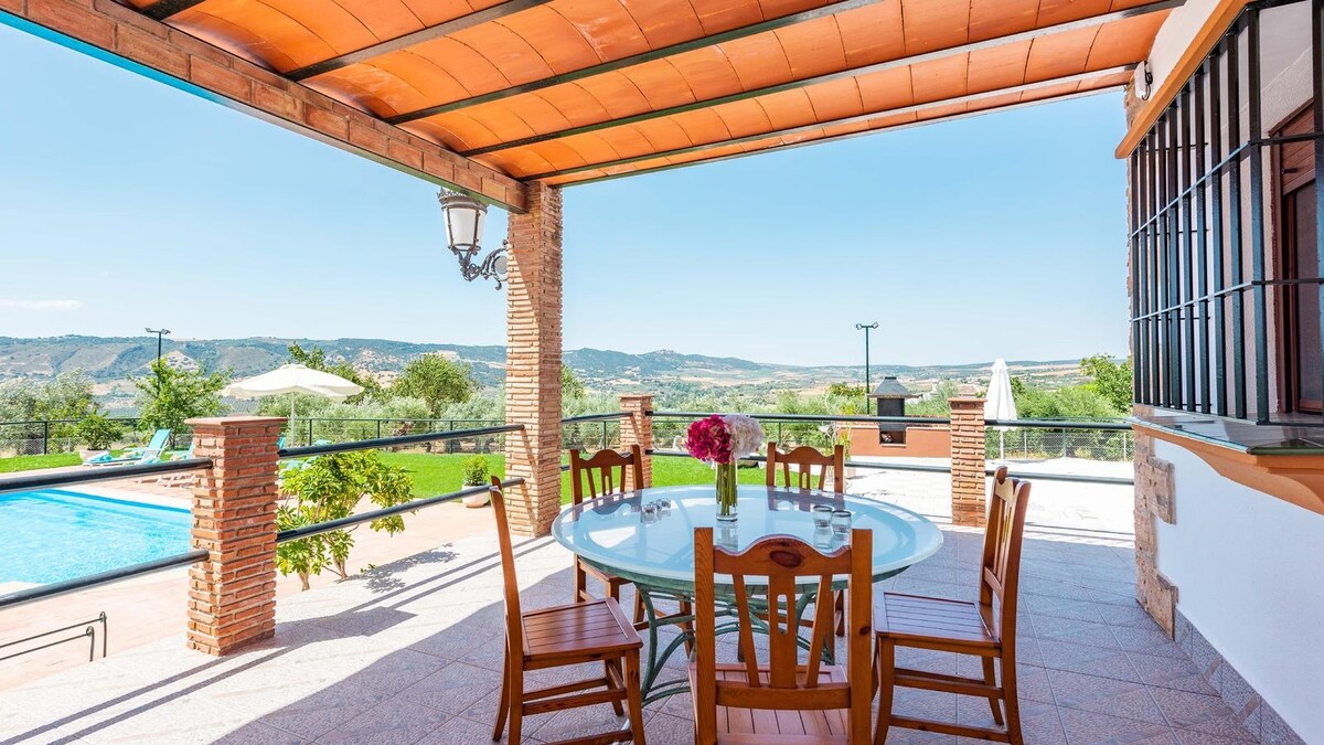 Spectaculaire villa située à seulement 1 km de Ronda, soignée dans les moindres détails sur ses 10 000 m2. Plongez dans un environnement rural unique où vous pourrez profiter d'une vue privilégiée sur la ville, vous reposer dans ses jardins, solarium, barbecue et piscine privée. Elle dispose d'une maison confortablement adaptée et décorée dans les moindres détails pour rendre votre séjour inoubliable : meubles originaux de style rondeño, ventilateurs de plafond, cuisine complète, douche à effet pluie, climatisation...