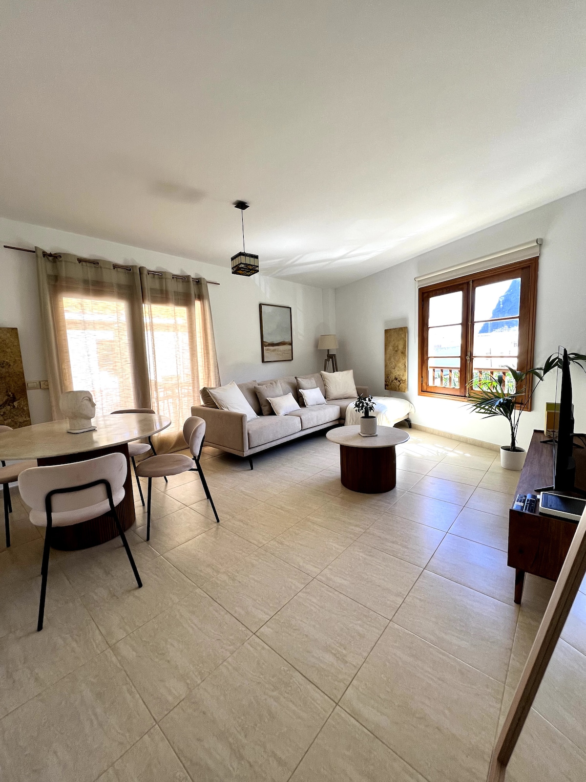 Appartement spacieux et lumineux. Il dispose d'une terrasse donnant sur la mer et les montagnes, de 3 chambres avec literie, d'une salle de bain avec serviettes, d'une cuisine, d'un salon, d'un salon et d'une buanderie séparée sur le toit. Situé dans un quartier calme, à proximité du supermarché, de l'école et de l'IES, du centre de santé et à quelques minutes à pied du centre historique. Parking facile. Situé au deuxième étage d'un immeuble avec seulement deux logements. Il dispose d'une connexion Wi-Fi gratuite.