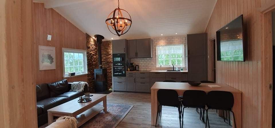 Chalet d'environ 60 mètres carrés avec 2 chambres. Cuisine privée avec vaisselle. Le chalet est situé dans un quartier paisible avec 3 autres chalets. Le chalet est situé dans une rue privée et le quartier est calme et paisible. Il y a un barbecue au chalet pour de belles soirées avec coucher de soleil dans le fjord. Il y a une cheminée dans le séjour et elle est livrée avec du bois de chauffage qui peut être utilisé s'il fait froid. Il y a aussi un chauffage électrique dans chaque pièce. Le linge de lit et le nettoyage sont inclus dans le prix.