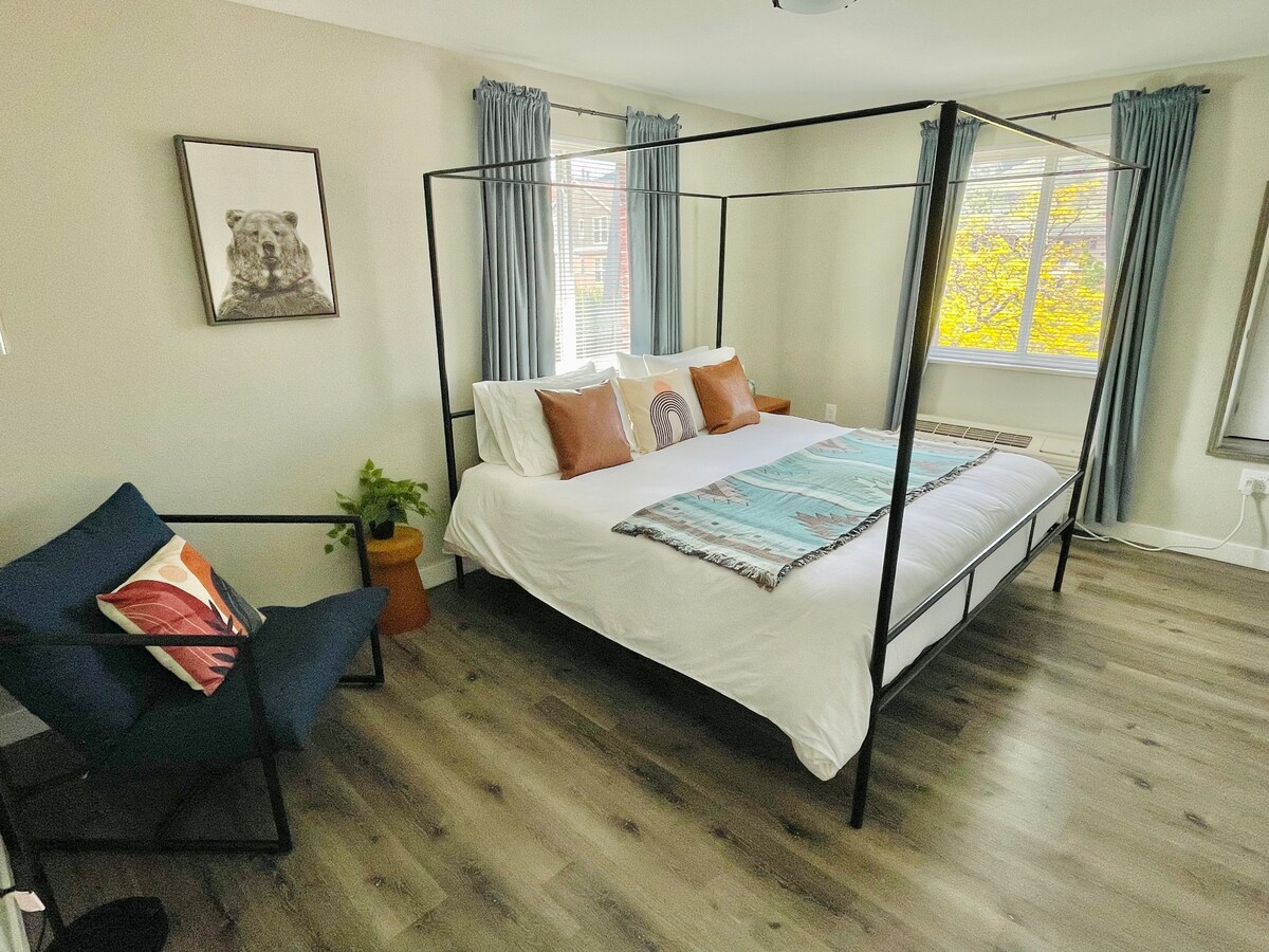 *Temporary lowered price because a front yard landscaping project is in progress* Cozy up in this recently designed, entirely private mini-suite in the ideal Sloan's Lake neighborhood, perfectly located for exploring the best of Denver. Ideal as a solo traveler’s nest, but can fit two in the queen bed. The walking space is tight, but the room is curated specifically to help you feel at home: fridge/microwave, books/games, work desk, shoe bins, coffee bar, and a gorgeously designed bathroom!