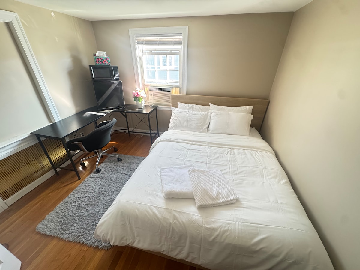 La maison est à 7 minutes à pied d'Ashmont T Stop. Une chambre principale unique et une 2e chambre confortable adjacente à une salle de bain spa en marbre (avec plancher chauffant et une grande douche et un banc intégré). Avec une cuisine propre et carrelée de verre et des comptoirs en granit, vous séjournerez dans une belle suite de luxe située dans un quartier convivial et sûr. Profitez de l'ambiance d'un hôtel du centre-ville sans le prix élevé. Remarque : il n'y a pas de salon séparé, mais des sièges confortables sont disponibles dans la 2e chambre et la cuisine