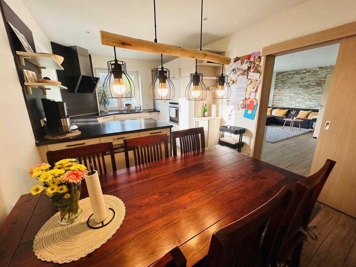 Willkommen in unserer stilvollen Ferienwohnung – ideal für Familien, Gruppen und Freunde. Die 2022 fertiggestellte Unterkunft bietet auf ca. 170 m² modernen Wohnkomfort. Euch erwarten ein großzügiger, offener Wohn- und Essbereich mit voll ausgestatteter Küche, vier separate Schlafzimmer, zwei Bäder sowie ein Schlafsofa für zwei weitere Gäste. Platz für bis zu 10 Personen. Highlight ist der helle Wohnbereich mit hoher Decke, offenem Fachwerk und verglastem Tennentor mit Blick auf den Dorfplatz.