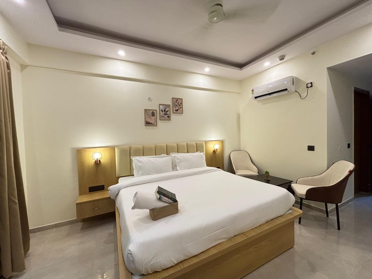 Welcome to the 3BHK Iris Penthouse, a luxurious and spacious retreat on the 19th floor of a stunning duplex penthouse. This exclusive listing offers complete private access to three elegantly designed bedrooms all with attached washrooms, a large living area, a fully equipped kitchen, a balcony, and a terrace. Ideal for families, groups, or business and travellers seeking comfort, style, and city views in a prime location. Perfect stopover for Ayodhya.