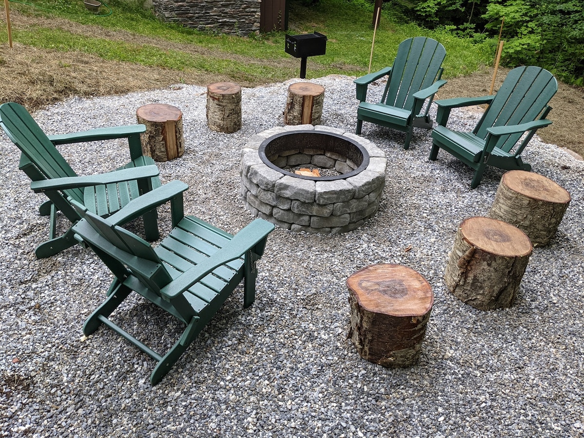 Évadez-vous au chalet Pine Ridge ! Une cabane en rondins isolée du Vermont nichée sous une crête remplie de pins. Prenez votre café du matin sur la grande terrasse enveloppante donnant sur Elm Brook avant votre journée de randonnée, de tournée des brasseries ou de ski ! La cabane offre des plans d'étage ouverts centrés autour de la grande cheminée en pierre, l'espace idéal pour les réunions de famille, d'amis ou une retraite en couple ! Pine Ridge Cabin est à seulement quelques minutes de la ville, des magasins, des restaurants, des bars et du spa !