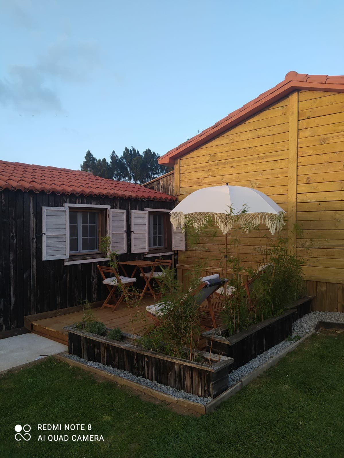 Maison avec jardin et barbecue, vue sur la mer.