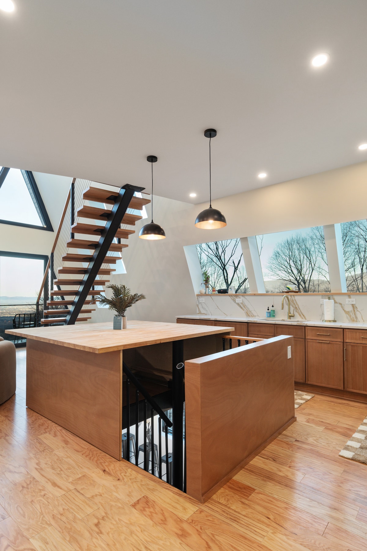 Bienvenue à Ava, une merveille de chalet triangulaire de 4 étages dans la vallée de Shenandoah. Découvrez des portes cachées, un home cinéma et un îlot coulissant magique révélant l'escalier en colimaçon menant à la salle de jeux. Profitez d'un lit en contrebas pour observer les étoiles dans le loft, d'un jacuzzi pour 7 personnes, d'une pierre à aiguiser et d'une vue imprenable sur la vallée. Idéalement situé, Ava offre l'isolement sans sacrifier la proximité des éléments essentiels ou la connectivité. Découvrez le mélange parfait de luxe et de nature, en vous immergeant dans la beauté de Shenandoah.