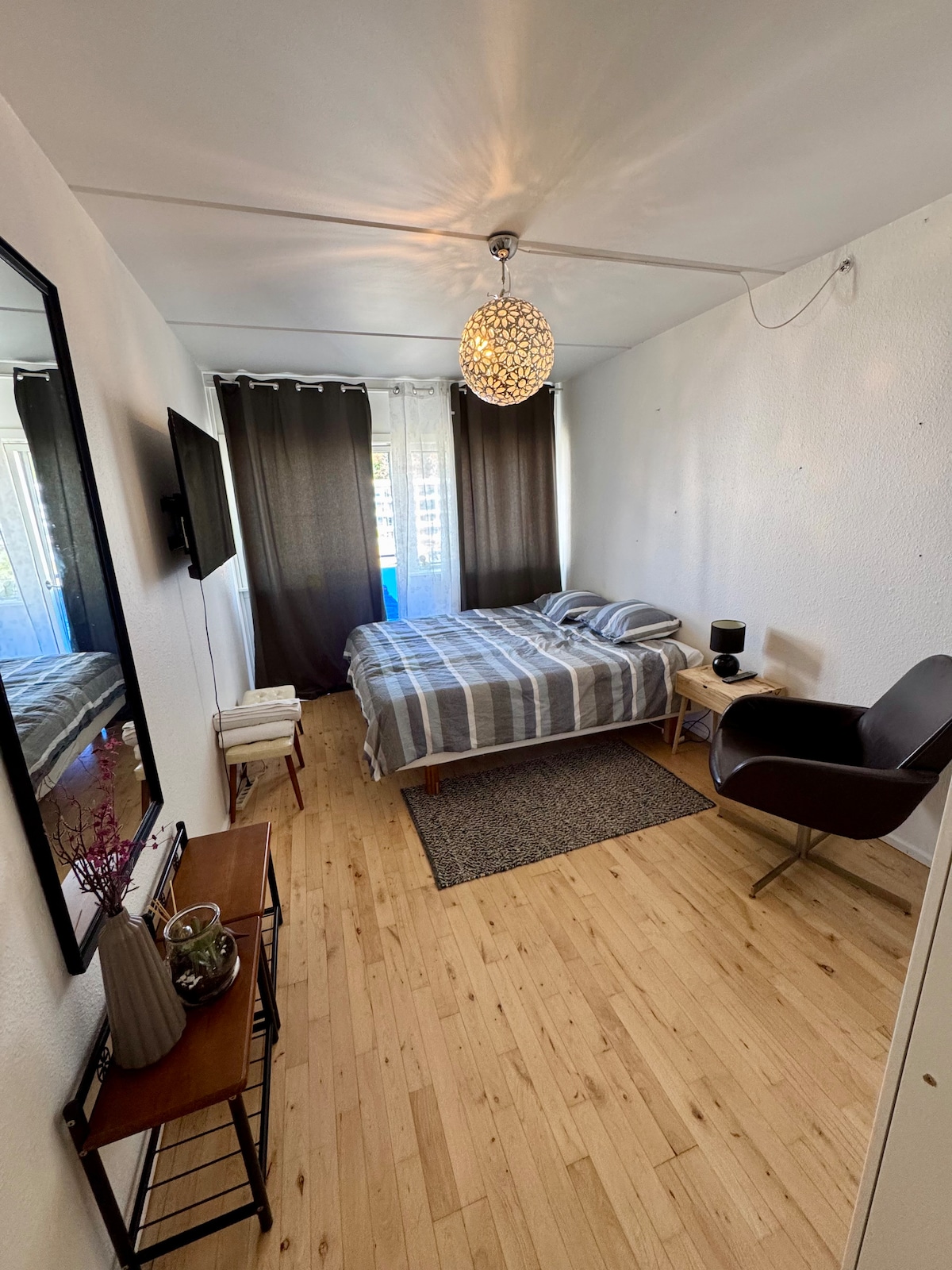 Chambre avec lit double, placard et bureau / chaise à louer L'appartement est également loué dans son intégralité pour des périodes de temps où je suis en vacances. Voir mon autre annonce : « Appartement entier à louer à Copenhague ». L'appartement fait 75 m ² avec salon avec cuisine ouverte. Balcon avec mobilier d'extérieur. Chambre avec lit double et bureau. Salle de bain avec douche. La cuisine dispose d'un four, d'une cuisinière, d'un lave-vaisselle, d'une cuisinière électrique, d'un mixeur, d'un grille-pain et d'une machine à café/mousseur à lait Nespresso. Deux tasses gratuites par jour et par personne, des capsules peuvent être achetées