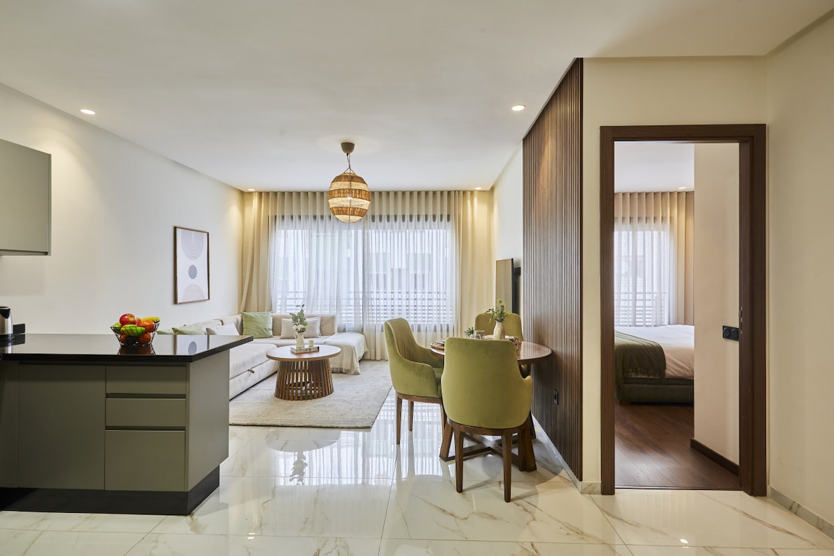 Appartement chic dans le quartier financier avec vue et salle de sport