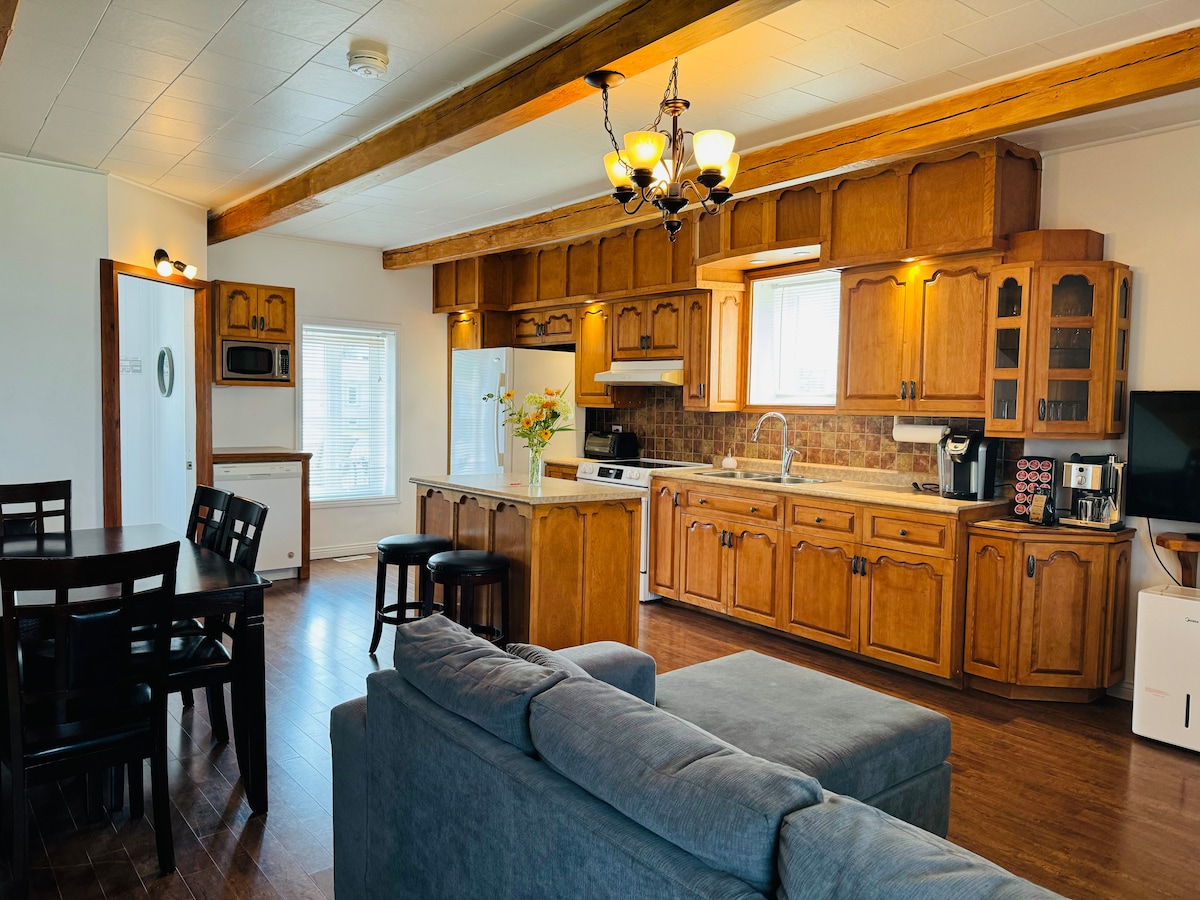 Situé au cœur du centre-ville, notre appartement coquet possède un cachet historique grâce à ses moulures et ses murs datant de 1939. Il offre une vue magnifique sur le fleuve et les couchers de soleil. Possédant deux chambres et un canapé lit au salon, il offre aussi toutes les commodités pour vous héberger lors de votre escapade dans notre magnifique région. Salle de bain récemment rénovée, climatisation, laveuse-sécheuse, draps de qualité, tout est là pour votre confort !