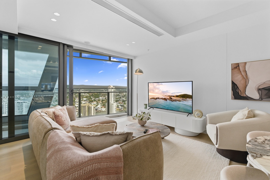 💝 Why You’ll Love It 📍 Prime Esplanade Location – Steps to the beach, Cavill Avenue, shops & Surfers nightlife 🌅 Unmatched Ocean Views – Watch sunrise over the sea from your private balcony 67th-Floor 🛏️ 2 Bedrooms with Hotel-Style Comfort – Includes a Master Suite with Walk-in Robe & Ensuite | A/C Throughout 🌿 Private Glass-Enclosed Balcony – Sip your morning coffee above the skyline or unwind at sunset 🏊 5-Star Resort Facilities – gym, sauna & outdoor terrace (Level 33)