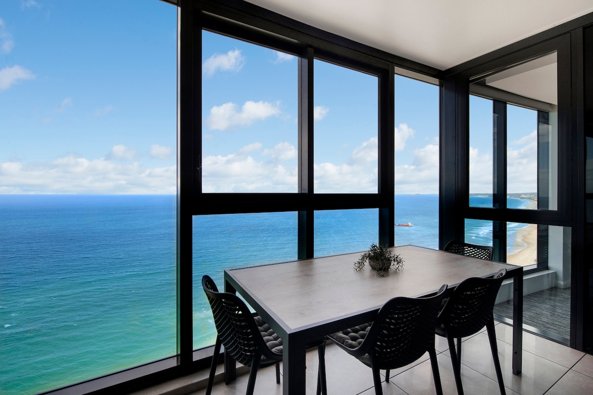 Direct ocean and city views from this brand new luxury 2-bedroom, 2-bathroom corner apartment. You will be high in the sky on level 50+. The unit is complete with FREE PARKING in the buildings gated underground car park. Absolute beachfront location at the newest building in central Surfers Paradise. The unit is equipped with everything you will need for your stay including fast 5G WiFi and more! Enjoy the heated indoor & outdoor pools, spa, sauna, gym, restaurants, and cafe!