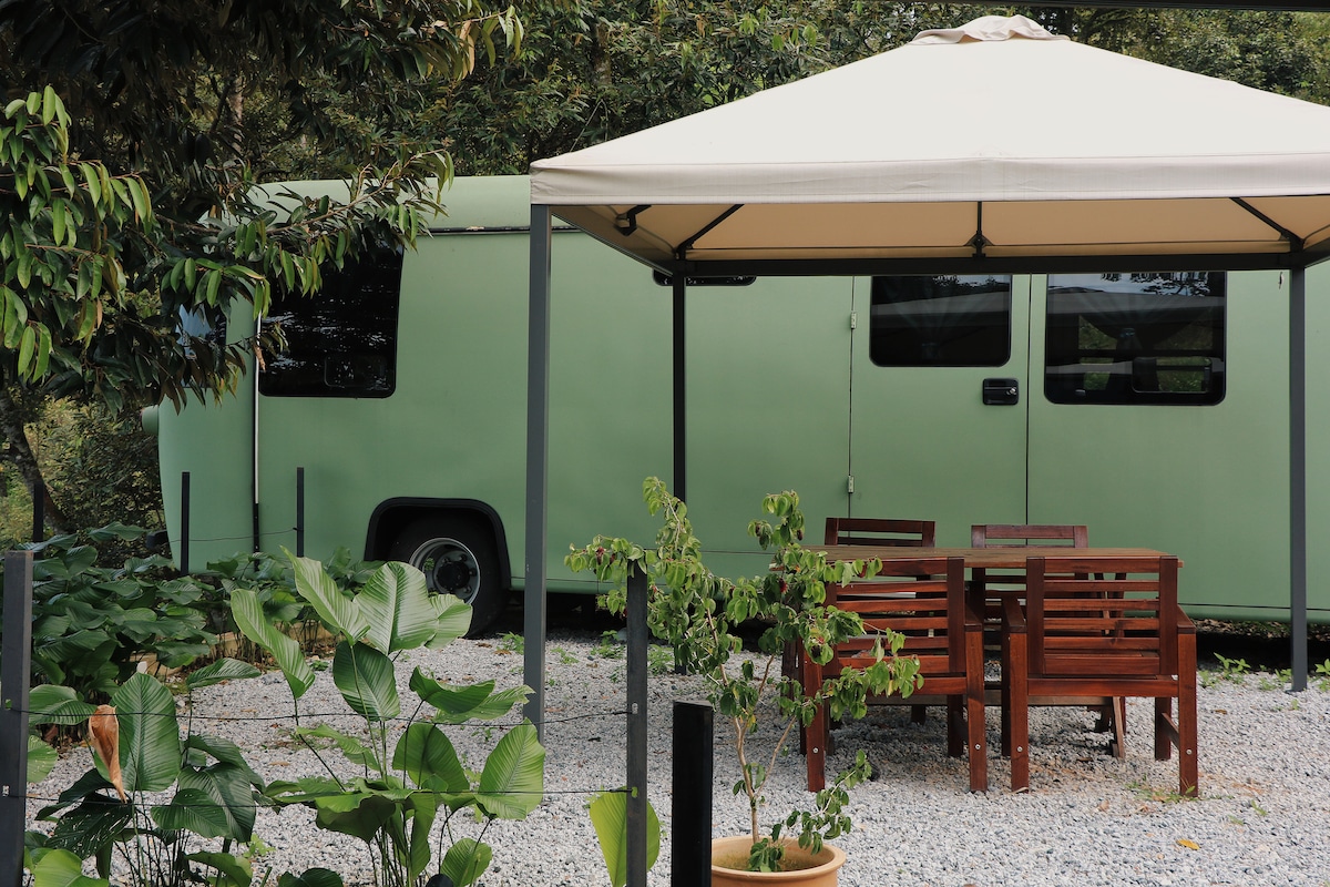 Découvrez le premier projet de glamping de la caravane de Broga depuis notre emplacement pittoresque dans notre plantation de vergers de durian avec un point de vue sur la célèbre colline de Broga au loin, entourée par la beauté du paysage local. Notre café chaleureux et accueillant sert d'ancre pour votre exploration de notre verger. Passez la journée à explorer le paysage avec une randonnée, à visiter les attractions à proximité, à embrasser les environs naturels ou à profiter lentement d'une pause café l'après-midi au café.