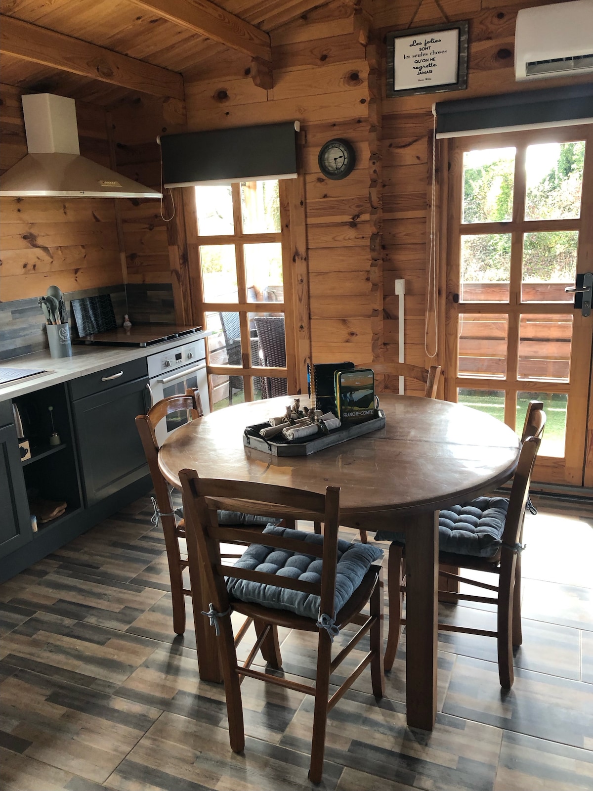 « Côté lacs » vous accueille près des Cascades du Hérisson, dans une maison en bois, chaleureuse et cosy, au coeur de la région des lacs rebaptisée « la petite Ecosse » pour vous ressourcer en famille ou entre amis. Au milieu d’un site naturel de 7 lacs de moyenne montagne, nous avons posé cette ossature de mélèze et de sapin pour vous faire découvrir ce petit coin de paradis. Nous avons chiné et rénové des meubles en bois ressortis du grenier familial pour rendre cet intérieur chaleureux.